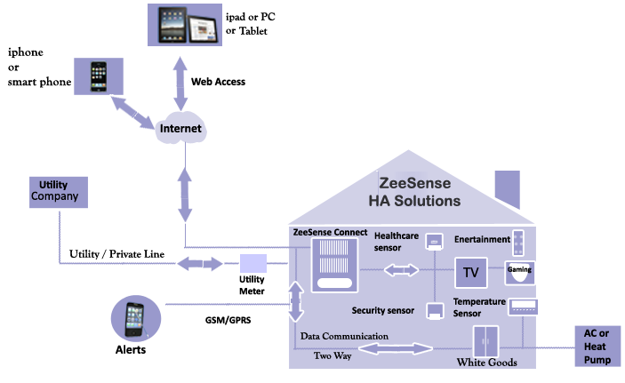 The “ZeeSense Connect “ Platform is a software solution that leverages a global and open wireless standard ZigBee along with BAC net, IP, broadband, IR and cellular connectivity to enable a range of highly desirable next generation Home /Office protection, Automation and Management services. The “ZeeSense Connect “ enables the Home/Office to become Digital, Connected and Smart wherein the Home Security/Automation companies and the broadband service providers can offer next generation broadband based home management services to customers including interactive home security, home monitoring and control, energy management and home healthcare solutions.The ZeeSense Connect is open and standards based implementation and can adopt to changing technological and customer needs.